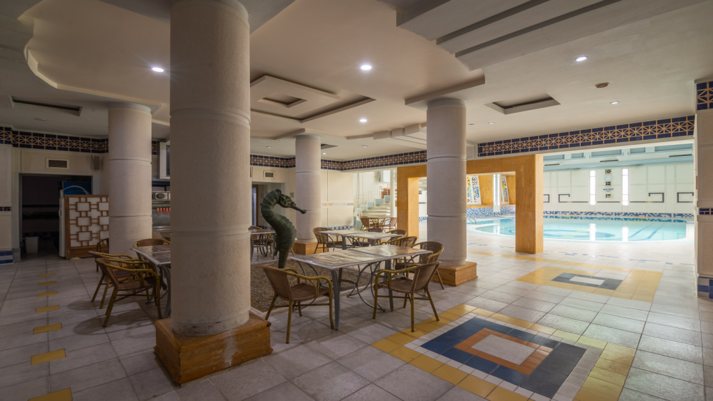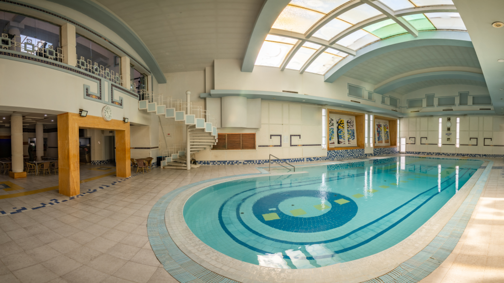 امکانات موجود در سالن اسـتخر عـبارت است از : جکـوزی ، سـونای خشـک سـونای بـخار (تر) ، سالن بدنسازی ، اتـاق ماساژ و کـافی شاپ. میهمانان استخر در قالب: اعضا ، میهمانان هتل و مشتریان آزاد متقاضی استفاده از خدمات تفریحی و آموزشی از امکانات استخر می باشند .